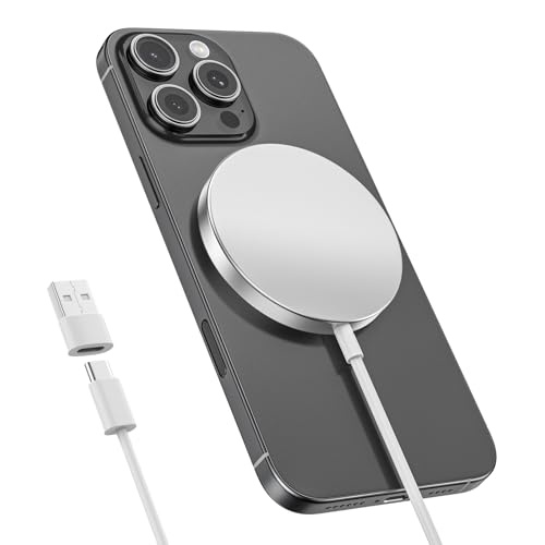 LMLSHOU ワイヤレス充電器 MagSafe 充電器 最大15W マグネット式 超軽量 強力磁気吸着機能 マグネット コンパクト 旅行 出張 オフィスに最適 iPhone 17/Air/16/15/14/13/12シリーズ、AirPods 4/3/2/pro対応