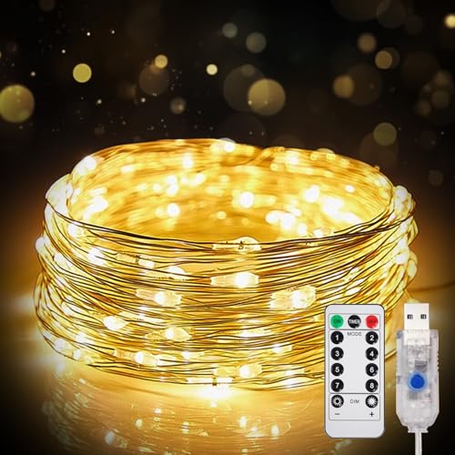 LED イルミネーションライト Seefox 【10M(100LED電球)】 ストリングライト USB式 ワイヤーライト タイマー&リモコン付き 8種照明モード 電飾 屋外・室内兼用 クリスマスツリー 飾りライト ガーデン/パーティー/クリスマス/結婚式 様々な場所に対応 (暖色)