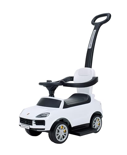 我が家にポルシェ カイエンが届いて、組み立ては主人と二人で30分くらいでサッと終わりました。説明書を見ながらだったので、特に迷うこともなくスムーズに。そして、いざ子供を乗せてみると、その瞬間から目がキラキラ!最初はちょこんと座っているだけだったのが、次第にハンドルを握って、足を動かそうとします。家の中のフローリングで使う時は、念のため下にマットを敷いて使っています。手押し棒があるおかげで、1歳になったばかりのうちの子でも安心して遊ばせられるのが嬉しいポイント。公園までの道中も、これに乗せていけばご機嫌で、以前のように抱っこをせがむことも少なくなりました。自分で運転する楽しさと、親と一緒にお出かけする喜びを同時に感じているようです。