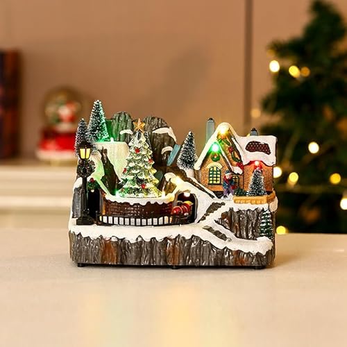 LumoLightクリスマスオーナメント 回転する雪山小屋 ミュージックボックス 電動デスクトップデコレーション 樹脂製 イルミネーション 室内用 クリスマスプレゼント ギフト 家庭/パーティー/カフェ装飾 (クリスマスツリー)