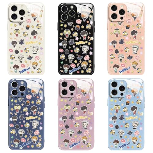 REAIUNTET ハイキュー スマホケース 17用ケース 強化ガラス 鏡面ガラス 耐摩耗 西谷夕 影山飛雄 日向翔陽 孤爪研磨 青葉城西 及川徹 脱着簡単 全身保護 潮流 軽量 萌えグッズ 誕生日 プレゼント クリスマス ハロウィン 新年 贈り物 17用多機種対応 (iphone11用,A)