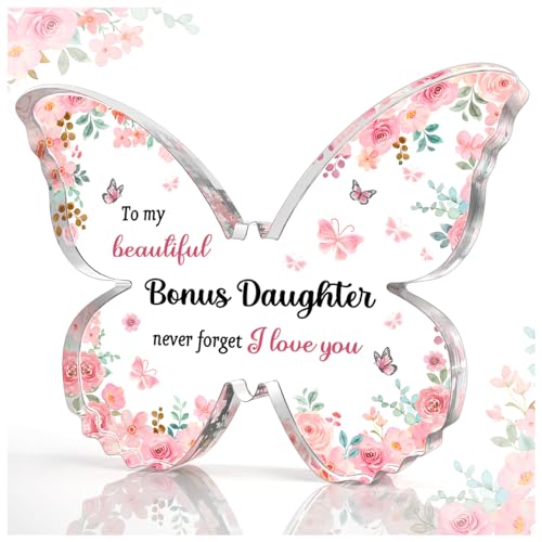 GiftyTrove ボーナス 娘へのギフト ユニークなボーナス 娘 誕生日ギフト – 5 x 3.8 x 0.5インチ バタフライ アクリル プラーク ギフト – 母の日 クリスマス 誕生日 ギフト ボーナス 娘 ステップ ママ お父さん