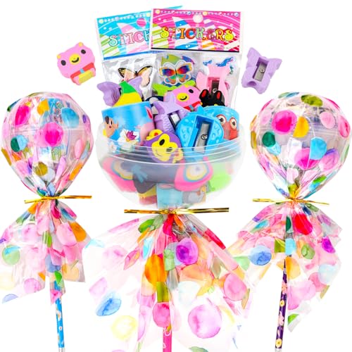 Thesixowls 文房具 パーティー記念品 子供用 24個パック ロリポップ型 文房具 パーティー用品 – 鉛筆消しゴム ステッカー スラップブレスレット 誕生日グッズバッグ 教室でのご褒美 学校の景品