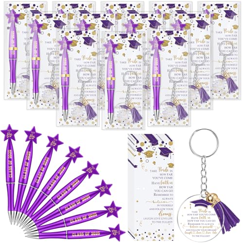 Spakon 24セット 卒業ギフト バルククラス 2025年卒業記念品 スターペン ポジティブカード付き インスピレーションを与えるアクリルキーホルダー タッセル付き 教師 生徒に 年末のギフト, パープル