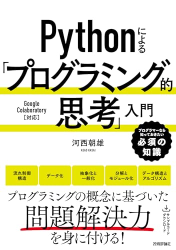 - Pythonによる「プログラミング的思考」入門amzn.to¥2,8602026年2月13日 8:27時点詳細を見る 正直に言うと、私がこの本を手に取った最初の動機は、すっごく単純。